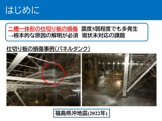- スロッシング現象によるステンレスパネルタンクの損傷被害に関して